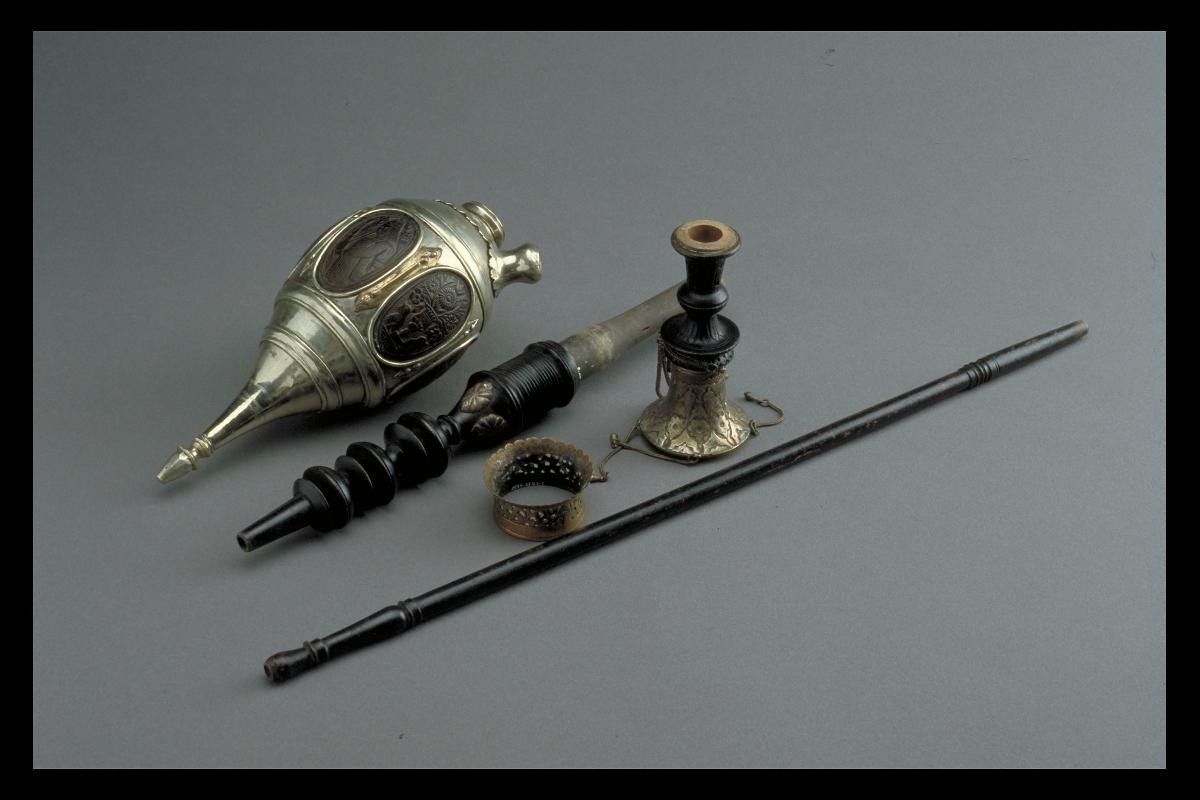 This Iranian hookah base is decorated in blue, red and brown painted floral motif rising from a footed bowl and a lobed medallion with a deer on white ground. The neck and mouth has a Qajar copper mount engraved with mythical beasts and figures surrounded by dense vegetation. Chinese blue and white porcelains found great favor in Iran during the Safavid period (1502-1736). As a result, numerous models were imitated and locally produced. Iranian blue and white ceramics, such as the proposed example, reveal both the reverence felt by Iranian potters for the original Chinese models as well as their own creativity as they added different painted designs to the surface.