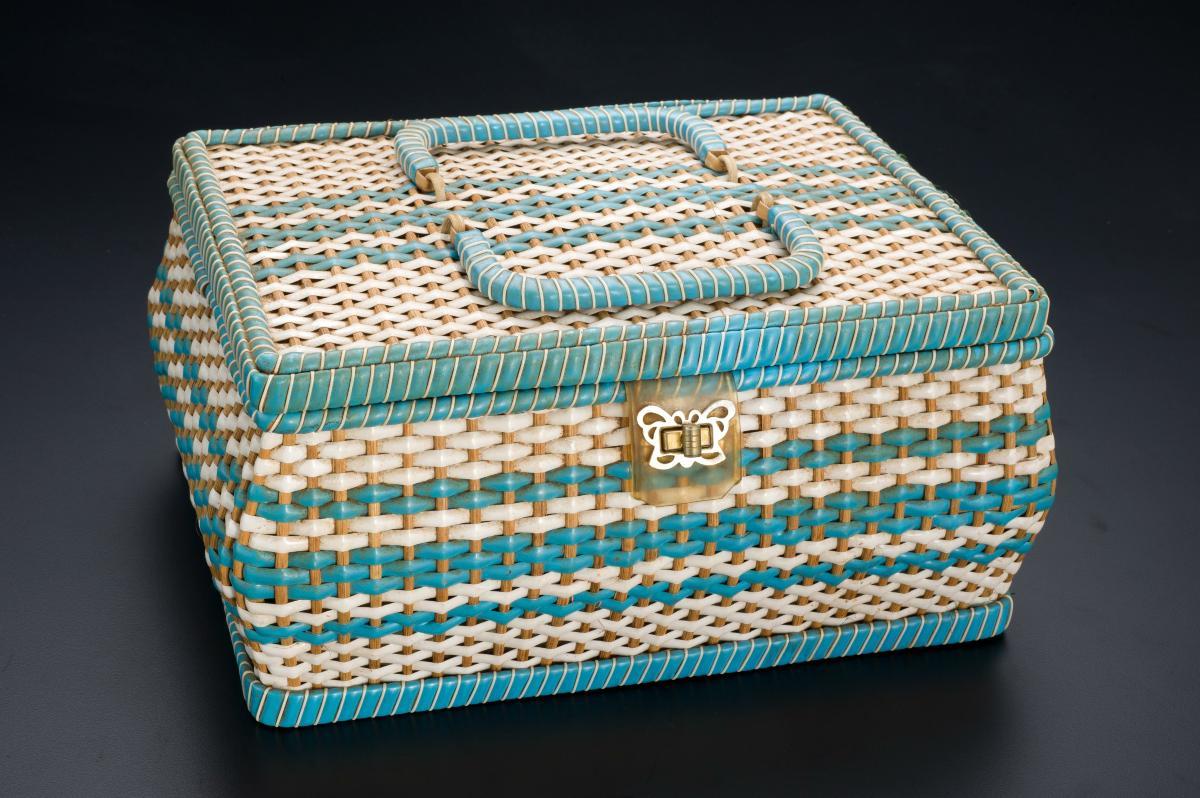 A Needlecraft Organiser plastic box and an assortment of sewing tools