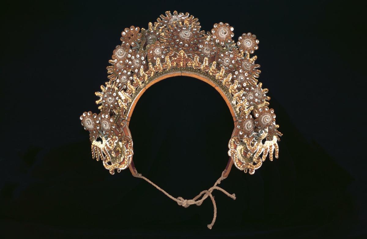 This lithograph print is a reproduction of an original drawing by Auguste van Pers (1815-1871), a Dutch artist who spent much of his life in the Dutch East Indies. It shows a Chinese merchant, with characteristic Qing Dynasty queue and skullcap, reclining in a type of palanquin known in Java as a tandoe. Tandoe were popular conveyances over mountainous terrain and were usually carried by two or four men; the two in this print wear north coast Javanese style textile wraps. The design of the tandoe pictured here reflects the occupant, with overhanging curled red terminals and two Chinese style dragons on the apex. This print is part of a series that was begun in Batavia in 1851, but abandoned when van Pers had to return to Holland. C.W. Meiling, one of the foremost Dutch lithographers of the time, eventually published the work in parts between 1853 and 1854 as Nederlandsch Oost-Indische Typen (literally ‘Dutch East Indies Types’). It is captioned in Dutch, Javanese, and French, as is common on prints focusing on the Dutch East Indies.