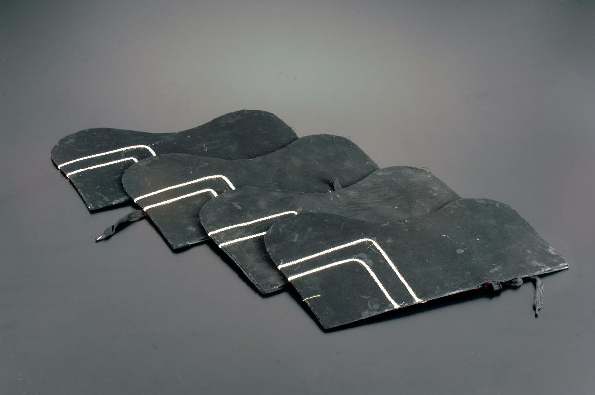 This is a group of accessories that form part of the elaborate costume of a Theyyam dancer. This group of accessories consists of anklets, part of arm accessories, part of the headgear, props (sword and sickle) and bells.Theyyam, also known as Kaliyattam or Thirayattam is a dance form from Northern Kerala where it is exclusively performed in temples. It is part of an invocation ceremony where the dancer literally transforms into the deity and bestows blessings upon the viewers during the course of his performance.