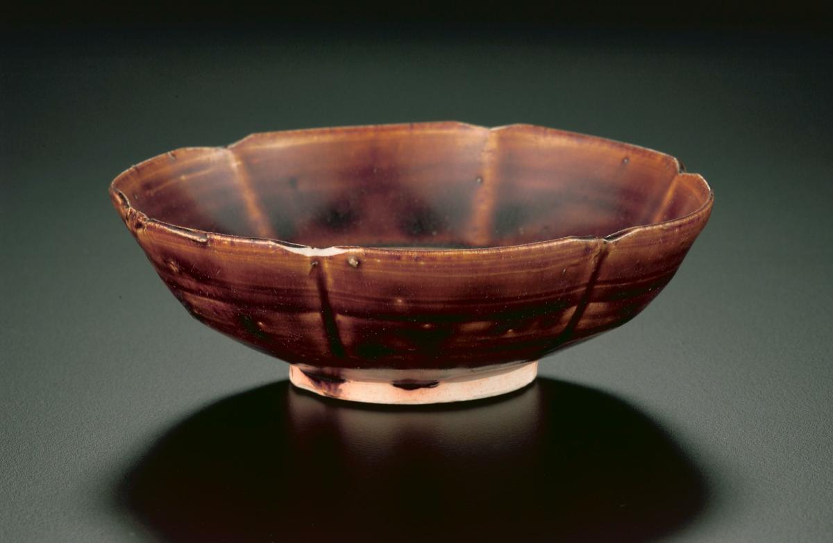 Chinese green ceramics such as this lobed bowl from the Tang Shipwreck are called celadons (青瓷) and were highly prized by foreign clients, and they have been found in many sites in Southeast Asia and the Middle East. Green-glazed stoneware was a specialty of southern China. The finest works (from the Yue kilns in Zhejiang province) were compared to jade. This was not only because of their colour, but also because they made a ringing tone when struck. The Yue kilns produced only a limited number of high-quality celadons. Other kilns attempted to copy these green wares, but the results were rougher. Only a few large bowls were found in the shipwreck, and they may have been made to suit Middle Eastern communal dining habits. The Tang Shipwreck was a 9th century vessel that was en route from China back to the Middle East when it sank off the coast of Belitung Island in the Java Sea.