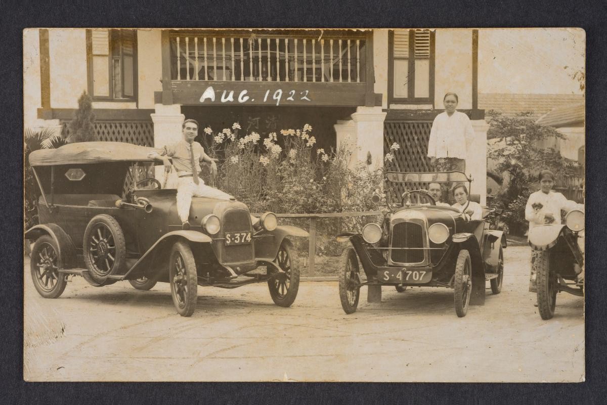 This photograph shows a Peranakan woman in sarong kebaya and a young boy on the step. This large group of photographs provides important visual documentation of the fashion, studio photography and lifestyle of Peranakans of the Straits Settlements and Indonesia in the late 19th to mid-20th centuries. The collection also allows study of different photographic techniques and covers a wide range of themes, including changing fashions (from baju panjang and baju kurong to kebaya and cheongsam), festive celebrations (weddings, funerals, ancestral rites, Chinese New Year), interiors, transportation and children.
