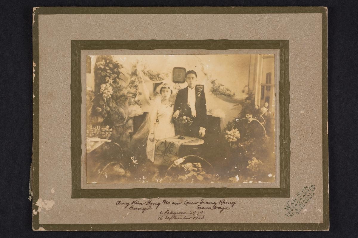 This photograph shows two children and a baby. This large group of photographs provides important visual documentation of the fashion, studio photography and lifestyle of Peranakans of the Straits Settlements and Indonesia in the late 19th to mid-20th centuries. The collection also allows study of different photographic techniques and covers a wide range of themes, including changing fashions (from baju panjang and baju kurong to kebaya and cheongsam), festive celebrations (weddings, funerals, ancestral rites, Chinese New Year), interiors, transportation and children.