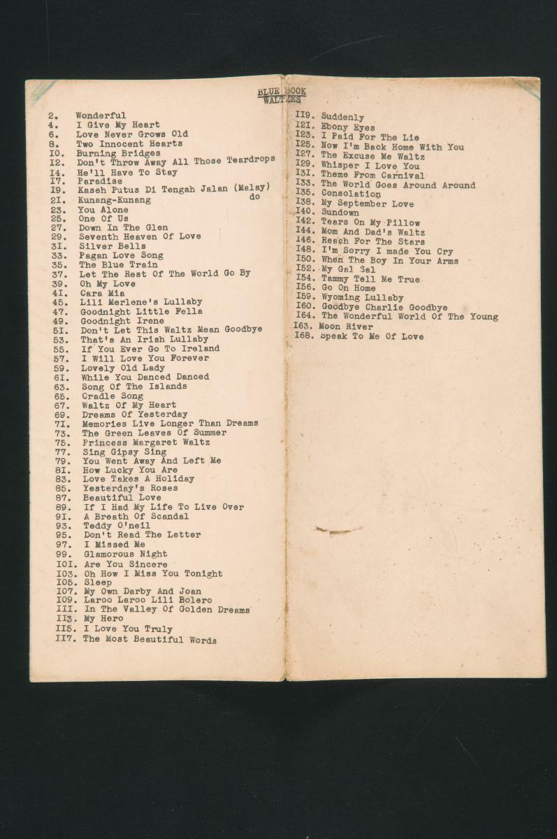The songs in this record were by Joe Loss and his orchestra. Loss was one of the most popular band leaders of the big band era in the UK in the 1940s. These songs were recorded by His Majesty’s Voice (HMV). Music from England and America were gaining popularity amongst Peranakans in Singapore and the Straits during the early 20th century. Musical bands and troupes were formed during this period and they would perform at celebratory occasions organized by Peranakans such as birthdays and weddings.