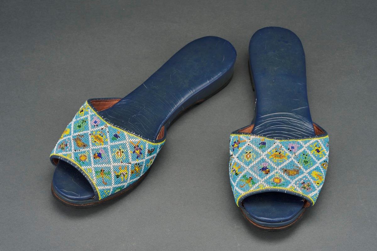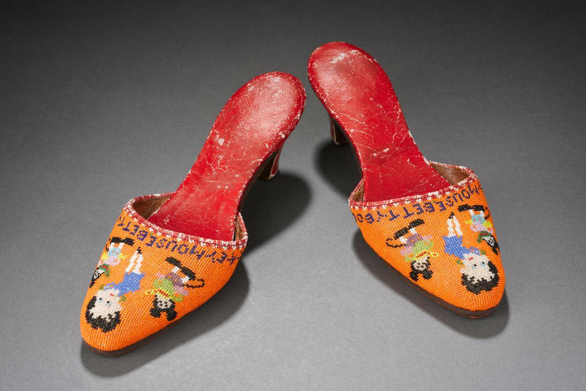 This pair of beaded heeled slippers is decorated on its face with a Betty Boop design. This cartoon was popular among Peranakan women during the early and mid-20th century. This pair was made in 1993 to imitate the style and taste of an earlier time.Written by Stella Kon in 1982, Emily of Emerald Hill tells the story of a Peranakan woman from young bride to strong-willed matriarch in the Peranakan enclave of Emerald Hill, in Singapore.