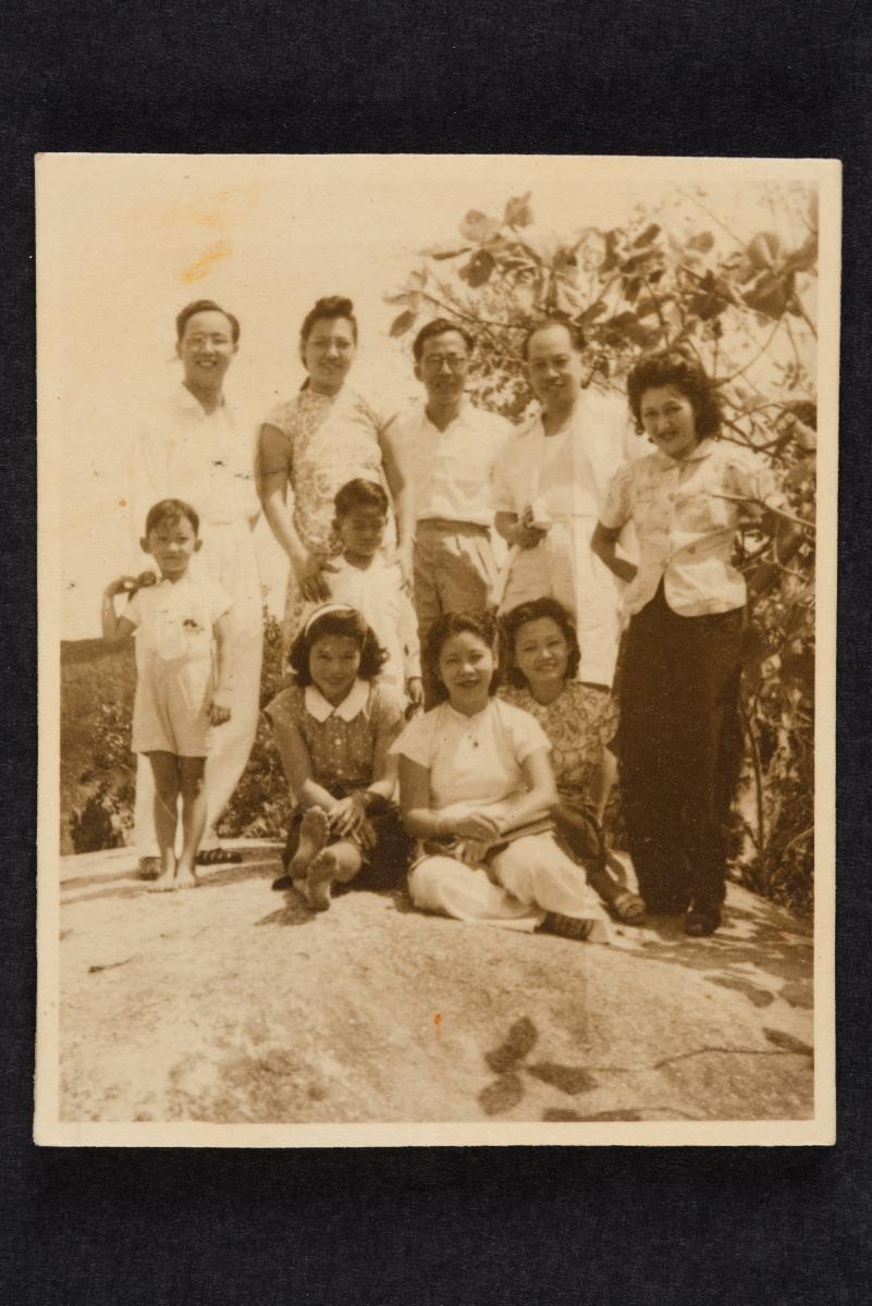 This photograph shows a group of men in uniform seated in front of a brick wall. On back reads: "To Ena G.Teh/Many thanks/Ralph Pixion/June 1958". There is a studio mark which reads “H.Preston/55 St. Hilda St. Hull/ Tel. 19501”. This large group of photographs provides important visual documentation of the fashion, studio photography and lifestyle of Peranakans of the Straits Settlements and Indonesia in the late 19th to mid-20th centuries. The collection also allows study of different photographic techniques and covers a wide range of themes, including changing fashions (from baju panjang and baju kurong to kebaya and cheongsam), festive celebrations (weddings, funerals, ancestral rites, Chinese New Year), interiors, transportation and children.
