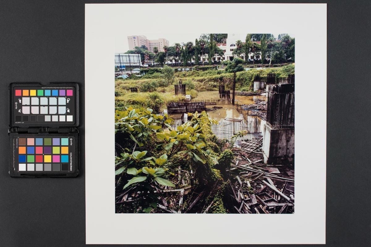 Standing Still is a series of 116 c-type photographs made by Gill during her travels across the Malaysian countryside over a period of three years (2000-2003). Taken in the aftermath of the 1997 financial crisis, when numerous building projects lay vacant and wanting, the artist describes the simultaneous encounter and confrontation with each of these sites, as “a place in time, where, one might say, the past lies in ruins, unkempt and untended, and the future also somehow has been abandoned and has started to crumble. No way forward, no way back.”