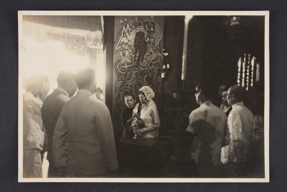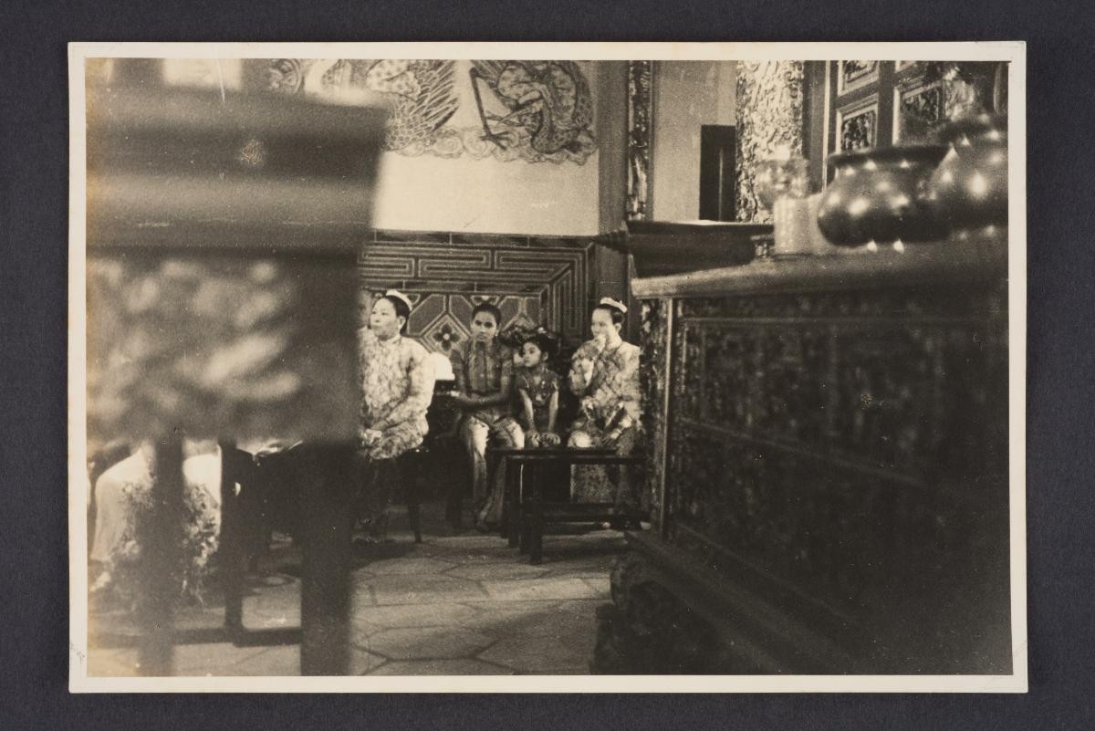 This coloured photograph shpws a Peranakan woman in sarong kebaya with kerosang. This large group of photographs provides important visual documentation of the fashion, studio photography and lifestyle of Peranakans of the Straits Settlements and Indonesia in the late 19th to mid-20th centuries. The collection also allows study of different photographic techniques and covers a wide range of themes, including changing fashions (from baju panjang and baju kurong to kebaya and cheongsam), festive celebrations (weddings, funerals, ancestral rites, Chinese New Year), interiors, transportation and children.
