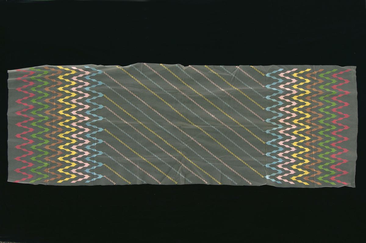 This colour combination of blue and white batik sarong is known as kelengan. The body of the sarong is decorated by large lotus buds while the front panel is decorated by patchwork designs, known as tambal motifs. Batik sarongs were worn by Peranakan Chinese in the Strait Settlements and Indonesia as a skirt to accompany a top known as a kebaya.