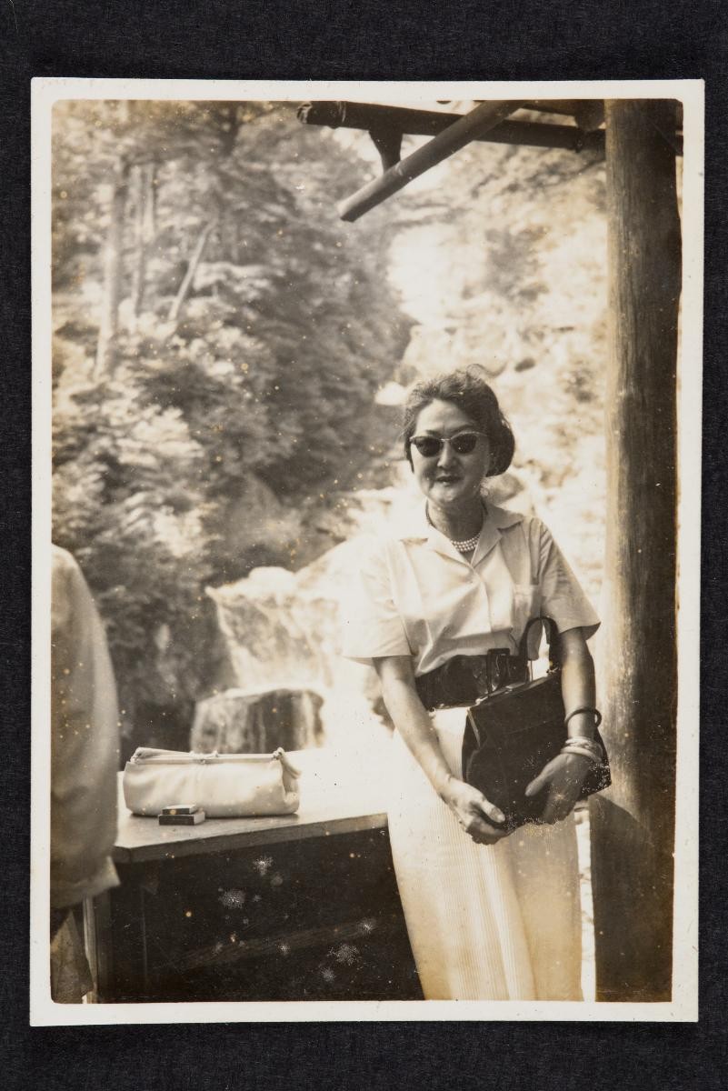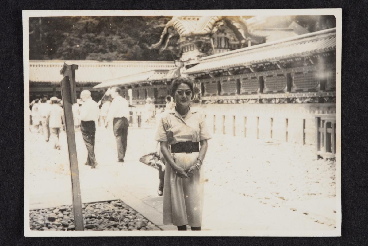 This photograph shows two women posing on the steps of a temple with people in the background. It is inscribed with “30 July ‘62” on the back of the photograph. This large group of photographs provides important visual documentation of the fashion, studio photography and lifestyle of Peranakans of the Straits Settlements and Indonesia in the late 19th to mid-20th centuries. The collection also allows study of different photographic techniques and covers a wide range of themes, including changing fashions (from baju panjang and baju kurong to kebaya and cheongsam), festive celebrations (weddings, funerals, ancestral rites, Chinese New Year), interiors, transportation and children.