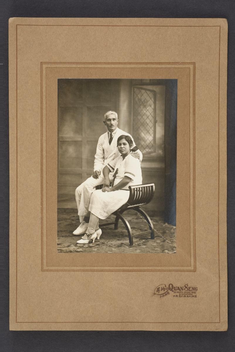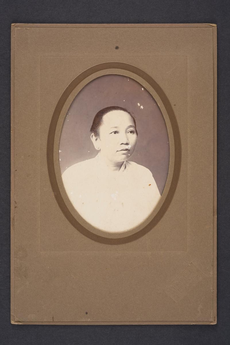 This photograph shows a nyonya in sarong kebaya. This large group of photographs provides important visual documentation of the fashion, studio photography and lifestyle of Peranakans of the Straits Settlements and Indonesia in the late 19th to mid-20th centuries. The collection also allows study of different photographic techniques and covers a wide range of themes, including changing fashions (from baju panjang and baju kurong to kebaya and cheongsam), festive celebrations (weddings, funerals, ancestral rites, Chinese New Year), interiors, transportation and children.