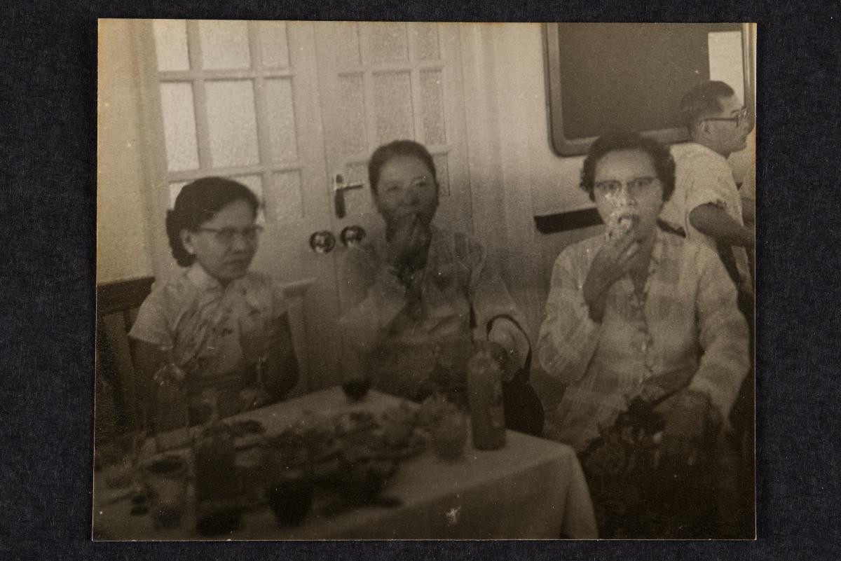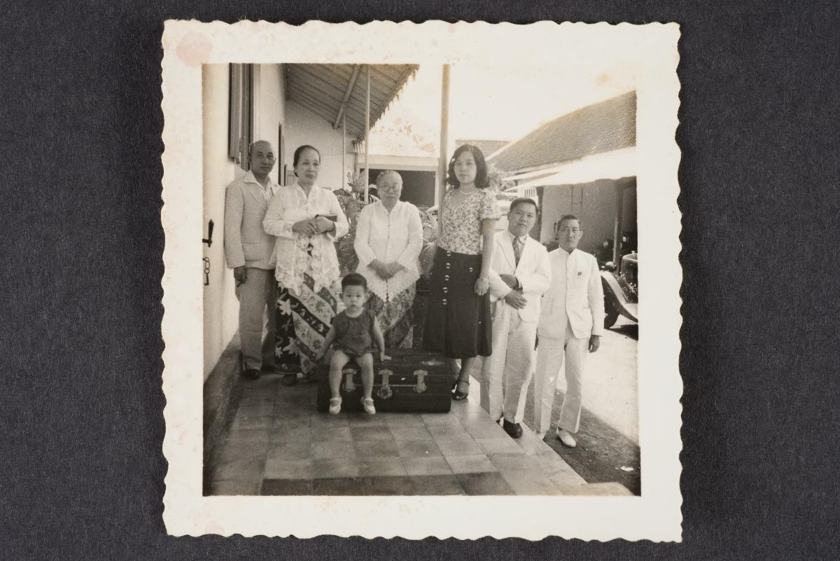 This is a photograph of a Peranakan family in a house. This large group of photographs provides important visual documentation of the fashion, studio photography and lifestyle of Peranakans of the Straits Settlements and Indonesia in the late 19th to mid-20th centuries. The collection also allows study of different photographic techniques and covers a wide range of themes, including changing fashions (from baju panjang and baju kurong to kebaya and cheongsam), festive celebrations (weddings, funerals, ancestral rites, Chinese New Year), interiors, transportation and children.