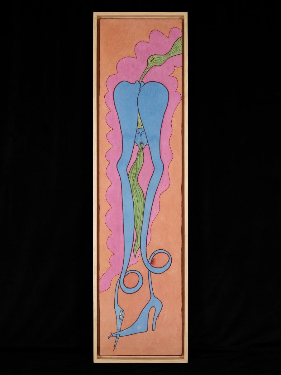 This set of artworks were painted in the early 1970s, when Hanoi was experiencing the peak of American bombing. The bulging eyes and mask-like faces represented in the portraits are indicative of the traumatic experience of living through the height of the war. Unlike official art of the period, which was intended to raise public morale, Tran Trung Tin dared to express vulnerability and despair in his works. Tran Trung Tin painted in private, using newspaper and whatever paints he could get hold of. His works could not be publicly shown in Vietnam until the late 1980s.