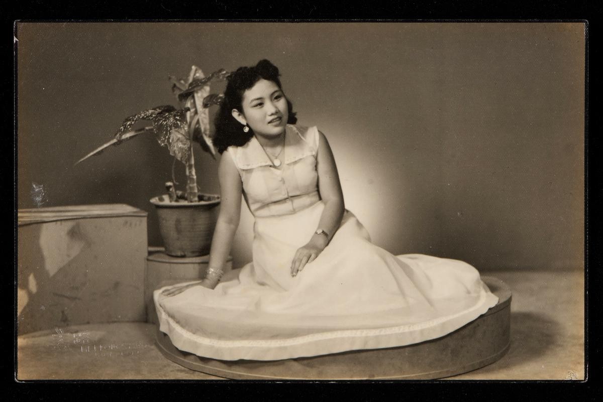 This is a portrait of an unidentified Chinese woman. The photograph was taken in the studio by GR Lambert and is presented as a small format carte-de-visite.