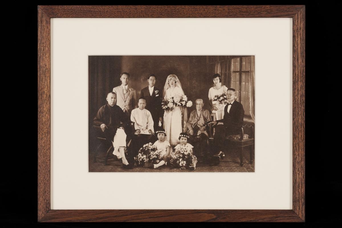 This photograph shows a family posing around the matriach. This large group of photographs provides important visual documentation of the fashion, studio photography and lifestyle of Peranakans of the Straits Settlements and Indonesia in the late 19th to mid-20th centuries. The collection also allows study of different photographic techniques and covers a wide range of themes, including changing fashions (from baju panjang and baju kurong to kebaya and cheongsam), festive celebrations (weddings, funerals, ancestral rites, Chinese New Year), interiors, transportation and children.