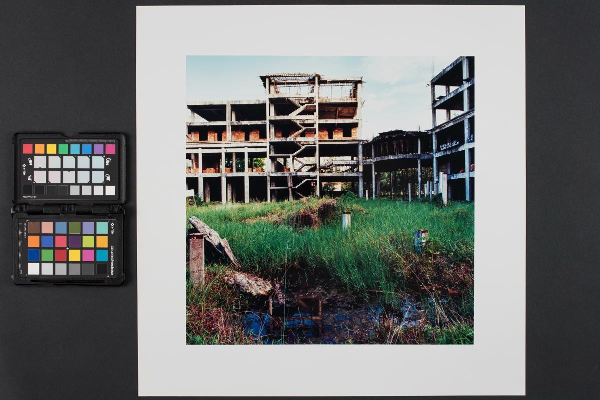 Standing Still is a series of 116 c-type photographs made by Gill during her travels across the Malaysian countryside over a period of three years (2000-2003). Taken in the aftermath of the 1997 financial crisis, when numerous building projects lay vacant and wanting, the artist describes the simultaneous encounter and confrontation with each of these sites, as “a place in time, where, one might say, the past lies in ruins, unkempt and untended, and the future also somehow has been abandoned and has started to crumble. No way forward, no way back.”