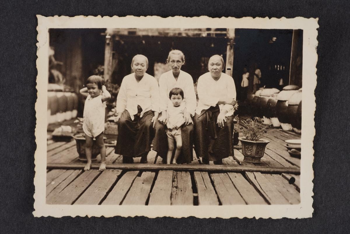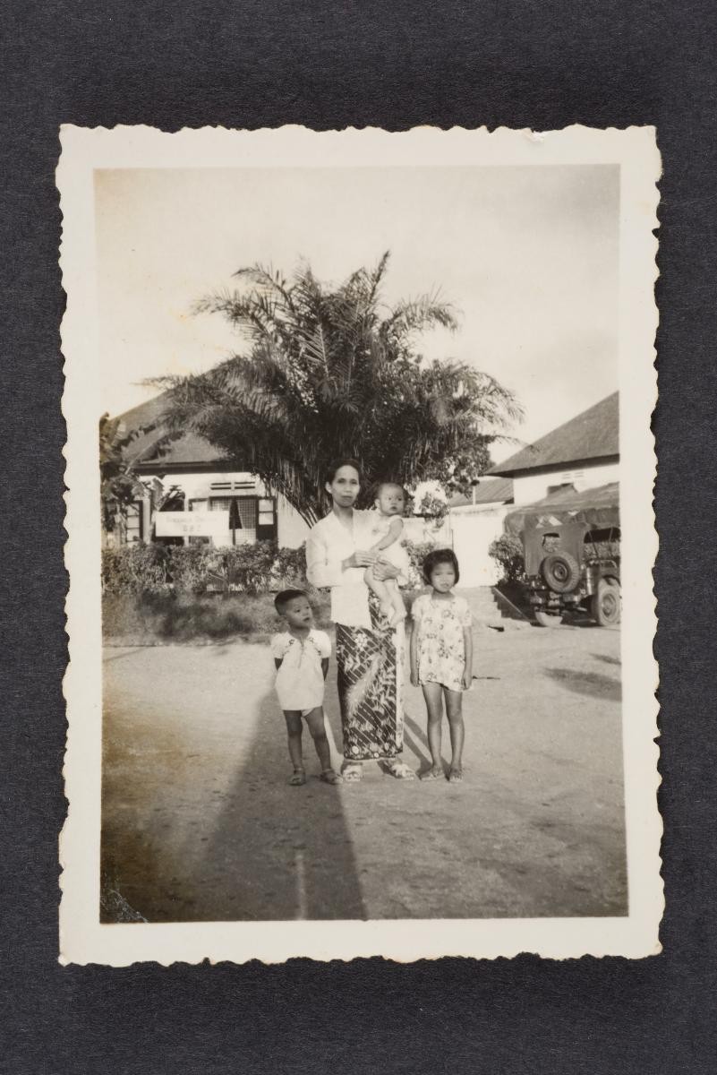 This photograph shows a nyonya in sarong kebaya with three children. This large group of photographs provides important visual documentation of the fashion, studio photography and lifestyle of Peranakans of the Straits Settlements and Indonesia in the late 19th to mid-20th centuries. The collection also allows study of different photographic techniques and covers a wide range of themes, including changing fashions (from baju panjang and baju kurong to kebaya and cheongsam), festive celebrations (weddings, funerals, ancestral rites, Chinese New Year), interiors, transportation and children.