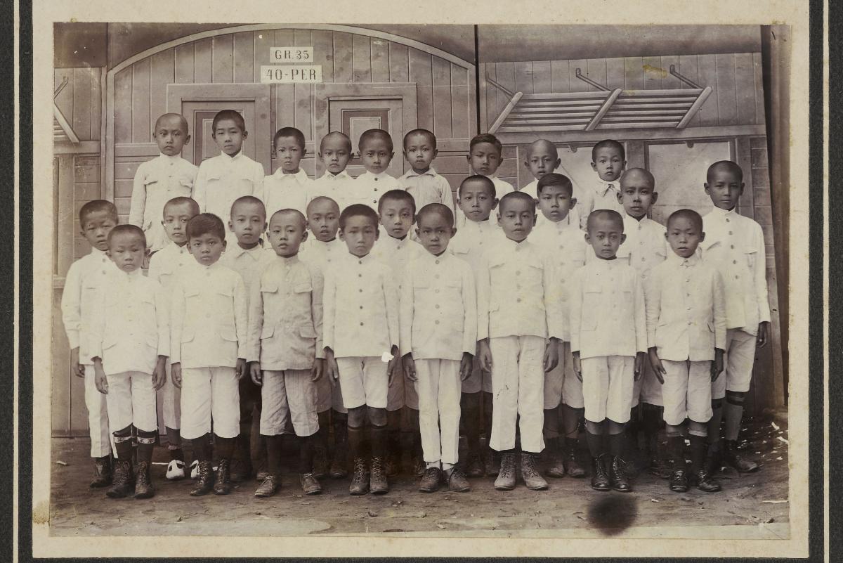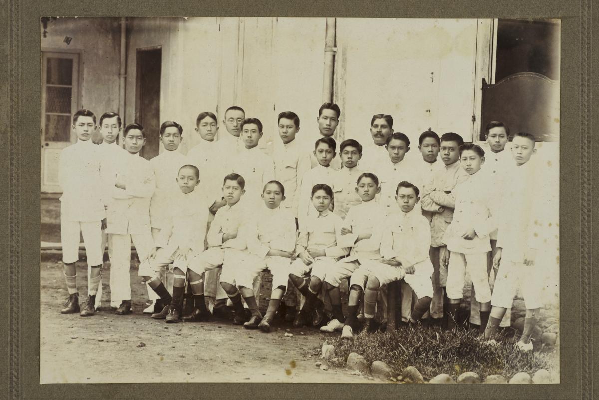 This photograph shows a Peranakan bride with feather headdress and a groom in western wedding attire. The photograph is accompanied with a paper which reads ‘Kwee Liong Pien Malang’ and the back of the photograph is inscribed with “Kwee Liong Pien/M”. This large group of photographs provides important visual documentation of the fashion, studio photography and lifestyle of Peranakans of the Straits Settlements and Indonesia in the late 19th to mid-20th centuries. The collection also allows study of different photographic techniques and covers a wide range of themes, including changing fashions (from baju panjang and baju kurong to kebaya and cheongsam), festive celebrations (weddings, funerals, ancestral rites, Chinese New Year), interiors, transportation and children.