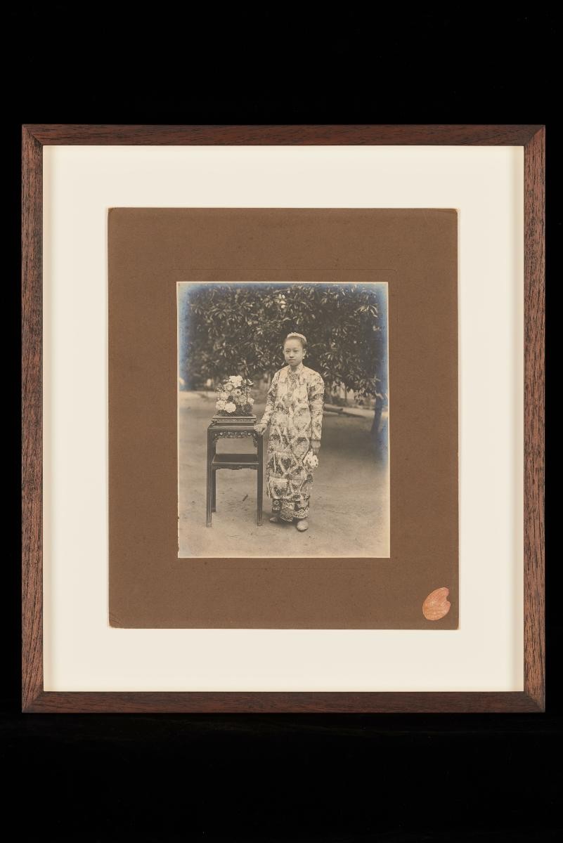 This is a studio portrait of three men, all with hats and wearing suits. This large group of photographs provides important visual documentation of the fashion, studio photography and lifestyle of Peranakans of the Straits Settlements and Indonesia in the late 19th to mid-20th centuries. The collection also allows study of different photographic techniques and covers a wide range of themes, including changing fashions (from baju panjang and baju kurong to kebaya and cheongsam), festive celebrations (weddings, funerals, ancestral rites, Chinese New Year), interiors, transportation and children.