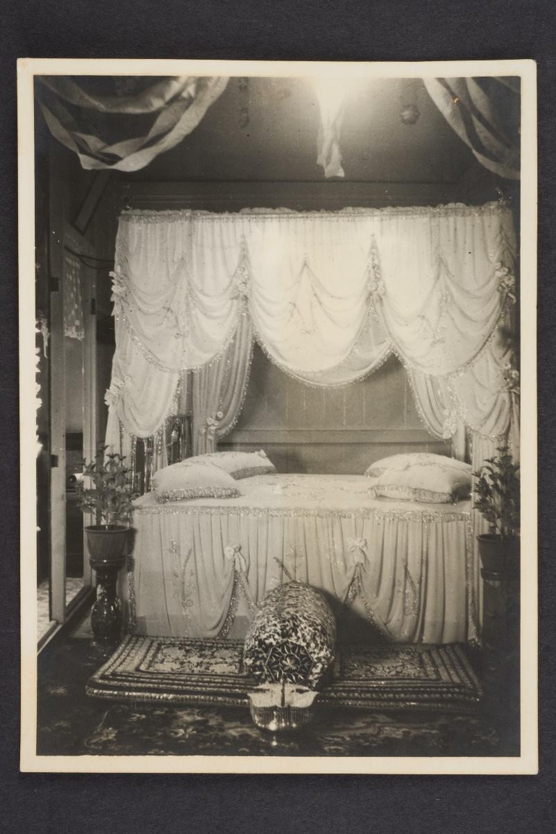 This photograph shows a nyonya in baju panjang with kerosang. The bck of the photograph is inscribed with words. This large group of photographs provides important visual documentation of the fashion, studio photography and lifestyle of Peranakans of the Straits Settlements and Indonesia in the late 19th to mid-20th centuries. The collection also allows study of different photographic techniques and covers a wide range of themes, including changing fashions (from baju panjang and baju kurong to kebaya and cheongsam), festive celebrations (weddings, funerals, ancestral rites, Chinese New Year), interiors, transportation and children.
