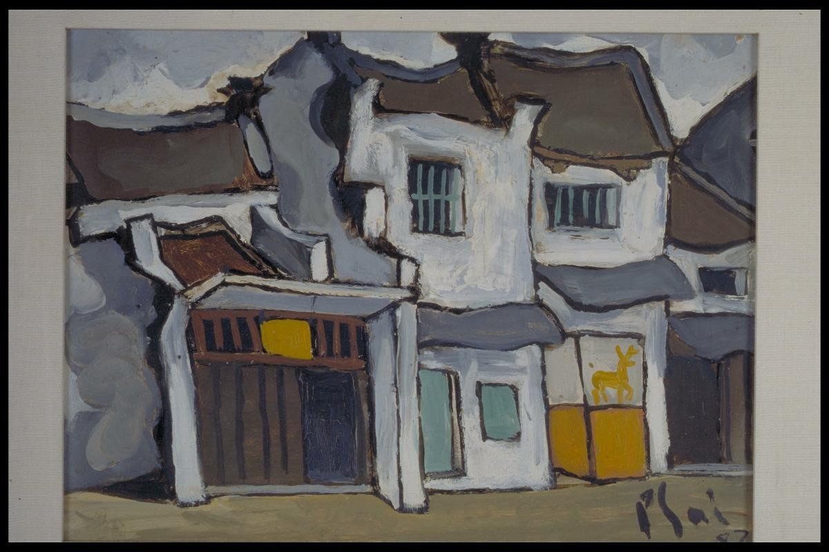 This set of artworks were painted in the early 1970s, when Hanoi was experiencing the peak of American bombing. The bulging eyes and mask-like faces represented in the portraits are indicative of the traumatic experience of living through the height of the war. Unlike official art of the period, which was intended to raise public morale, Tran Trung Tin dared to express vulnerability and despair in his works. Tran Trung Tin painted in private, using newspaper and whatever paints he could get hold of. His works could not be publicly shown in Vietnam until the late 1980s.