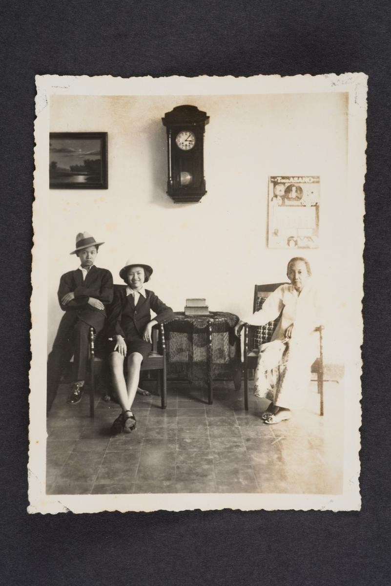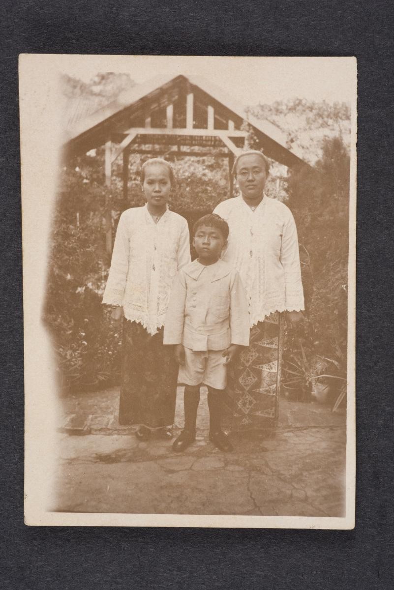 This photograph shows a nyonya in sarong kebaya seated between two children in western clothes. This large group of photographs provides important visual documentation of the fashion, studio photography and lifestyle of Peranakans of the Straits Settlements and Indonesia in the late 19th to mid-20th centuries. The collection also allows study of different photographic techniques and covers a wide range of themes, including changing fashions (from baju panjang and baju kurong to kebaya and cheongsam), festive celebrations (weddings, funerals, ancestral rites, Chinese New Year), interiors, transportation and children.