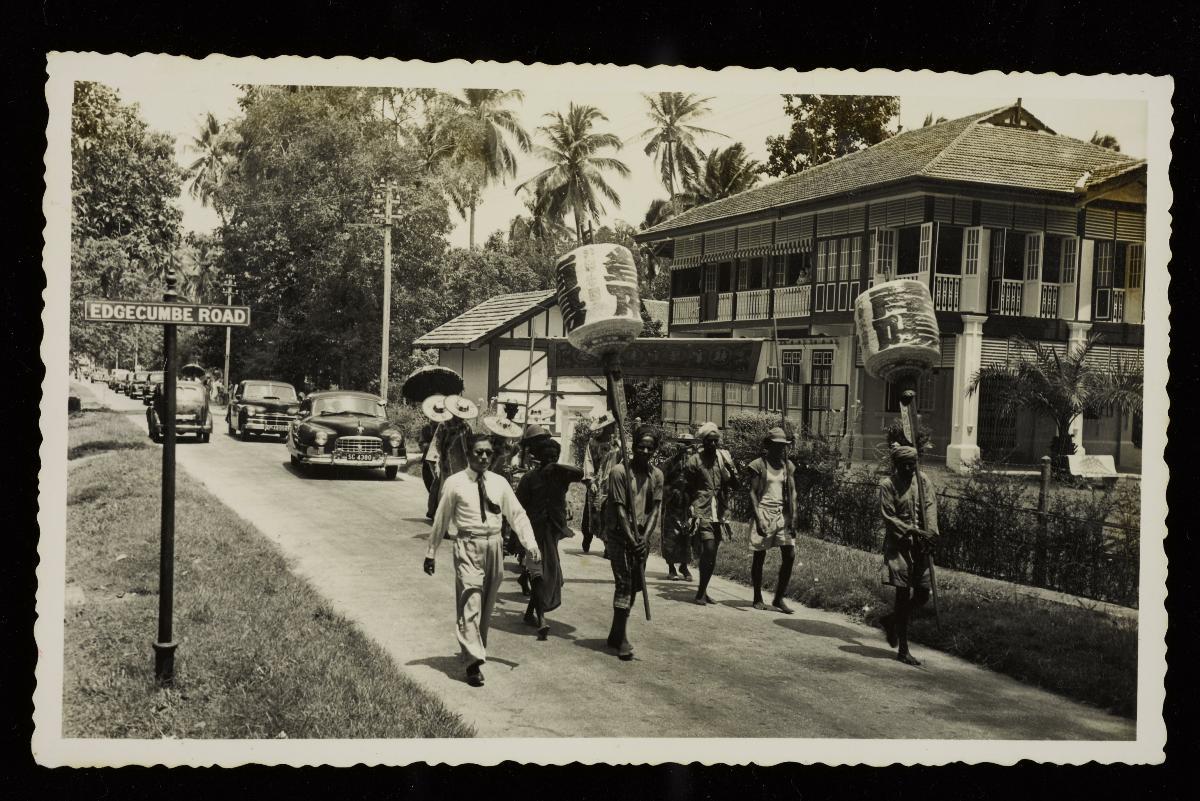 This photograph shows a woman in a strapless dress with earrings. The caption reads "13-4-60/Love (?)" . On back is the studio mark “Yick Lau Studio (Baby Portrait Expert) 7-11 Leighton Road Happy Valley Hong Kong”. This large group of photographs provides important visual documentation of the fashion, studio photography and lifestyle of Peranakans of the Straits Settlements and Indonesia in the late 19th to mid-20th centuries. The collection also allows study of different photographic techniques and covers a wide range of themes, including changing fashions (from baju panjang and baju kurong to kebaya and cheongsam), festive celebrations (weddings, funerals, ancestral rites, Chinese New Year), interiors, transportation and children.