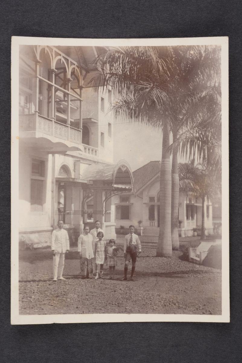 This wedding photograph shows the Peranakan bride and groom in western wedding attire. The back of the photograph is inscribed with “Thio Chan Bee & Ong Hay Way’s Wedding Jan 1927”. This large group of photographs provides important visual documentation of the fashion, studio photography and lifestyle of Peranakans of the Straits Settlements and Indonesia in the late 19th to mid-20th centuries. The collection also allows study of different photographic techniques and covers a wide range of themes, including changing fashions (from baju panjang and baju kurong to kebaya and cheongsam), festive celebrations (weddings, funerals, ancestral rites, Chinese New Year), interiors, transportation and children.