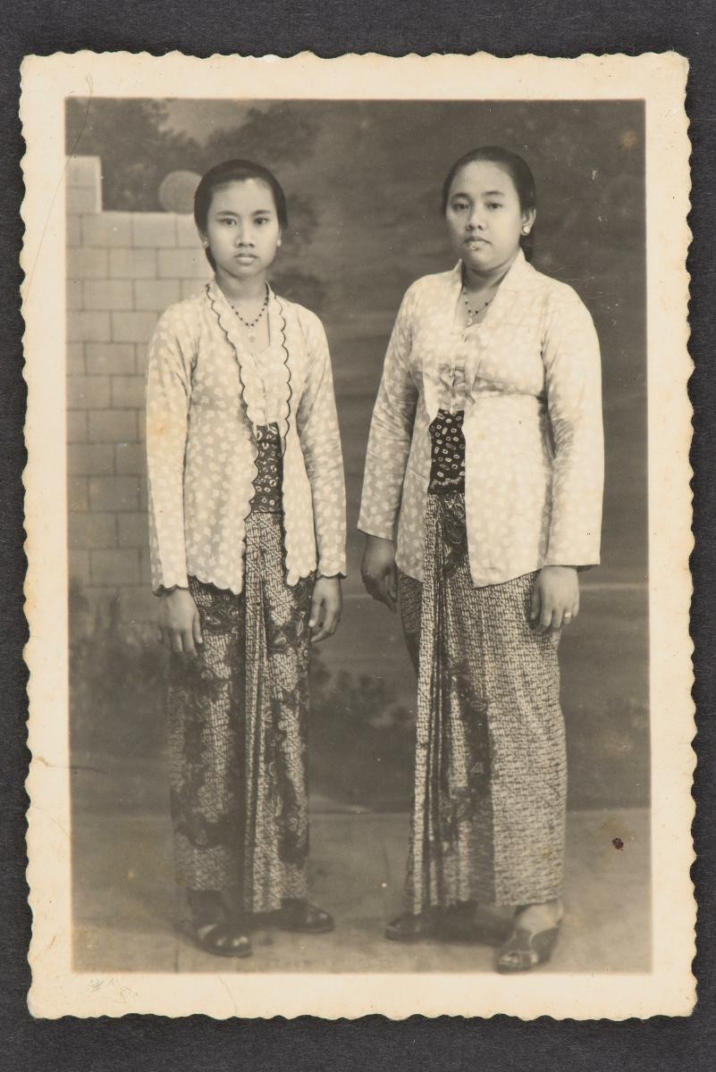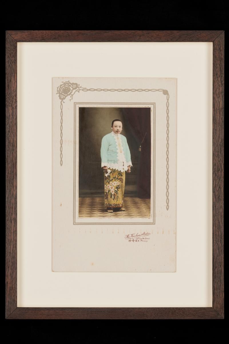This is a studio portrait of three children. This large group of photographs provides important visual documentation of the fashion, studio photography and lifestyle of Peranakans of the Straits Settlements and Indonesia in the late 19th to mid-20th centuries. The collection also allows study of different photographic techniques and covers a wide range of themes, including changing fashions (from baju panjang and baju kurong to kebaya and cheongsam), festive celebrations (weddings, funerals, ancestral rites, Chinese New Year), interiors, transportation and children.