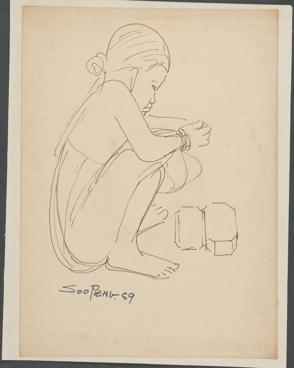 Kassian Cephas was the first known photographer of Javanese descent, eventually succeeding his Dutch instructor as official painter and photographer to the royal court of Jogjakarta. In addition to these duties, Cephas ran a successful commercial photo studio, making portraits by appointment as well as selling commercial prints. He also contributed actively to the Dutch-led Archaeological Society’s ongoing projects in the documentation of Javanese archaeological and material culture. His photographs of genre scenes, ethnographic ‘types’, and portrait works offer some insight into Cephas’s practice. The recurrence of certain architectural features and studio backdrops is especially telling, establishing known locations and illustrating the self-conscious way many of these images were staged. The contrast between the intimate, engaging portrait photographs and the much less personal, almost documentary ‘types’ also shows the artist’s ability to vary his visual language and stylistic mode in response to his intended audience.