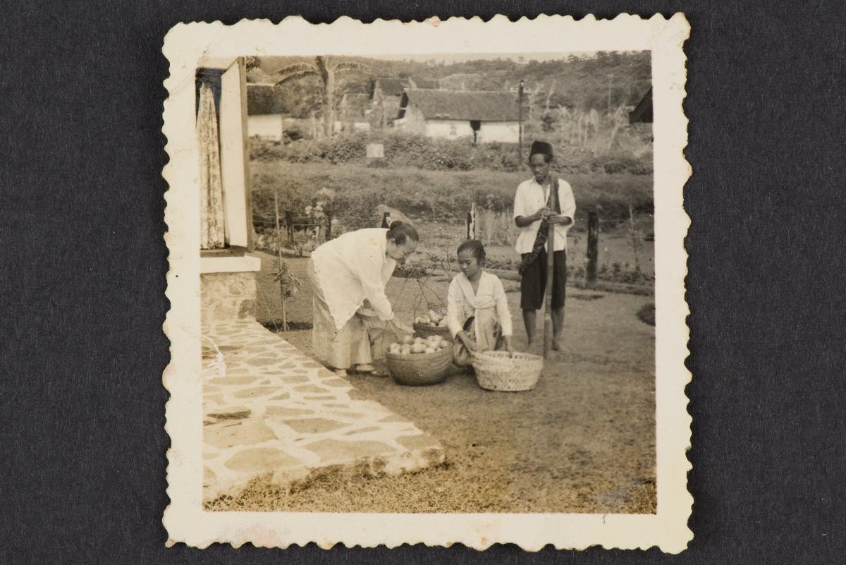 This photograph shows a baby resting on a pillow. This large group of photographs provides important visual documentation of the fashion, studio photography and lifestyle of Peranakans of the Straits Settlements and Indonesia in the late 19th to mid-20th centuries. The collection also allows study of different photographic techniques and covers a wide range of themes, including changing fashions (from baju panjang and baju kurong to kebaya and cheongsam), festive celebrations (weddings, funerals, ancestral rites, Chinese New Year), interiors, transportation and children.