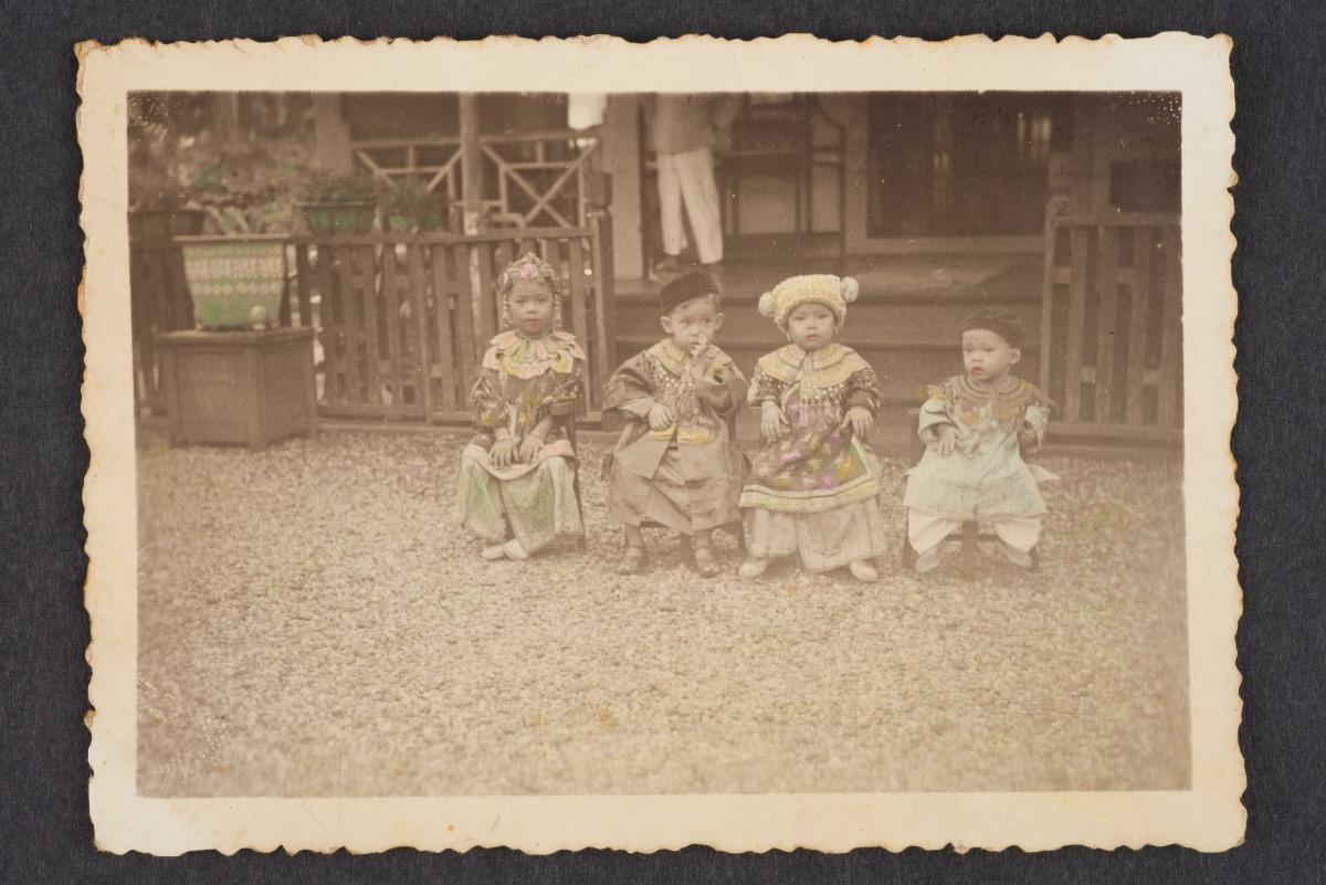 Five children in elaborate Chinese outfits.The studio established in 1877 by the German photographer Gustave Richard Lambert (1846–1907) became one of the most famous and enduring in Singapore. It catered to both visitors and local residents. Lambert himself left Singapore in 1885, but the business continued to be run by different European managers until it finally closed in about 1919. Many of the Lambert photographs have inscribed titles and inventory numbers, corresponding to catalogues issued by the studio.