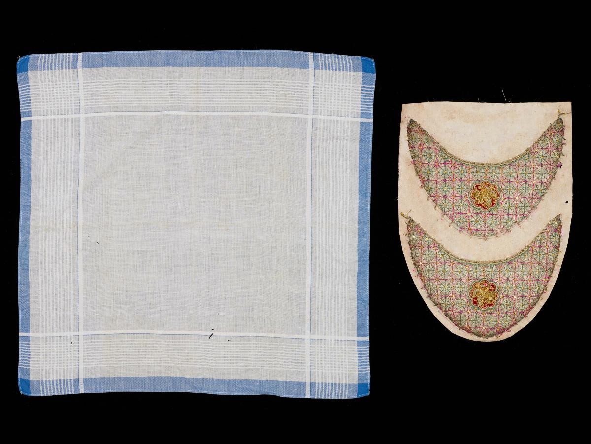This purse is embroidered with a figure of a dragon on one side and a phoenix on the other. As shown on this piece, the phoenix is a combination of the neck of a crane, feathers of a golden pheasant and tail of a peacock, which is effectively depicted here with both metal and glass seed beads. It was a symbol of honour and riches. It was said to appear only in times of peace.