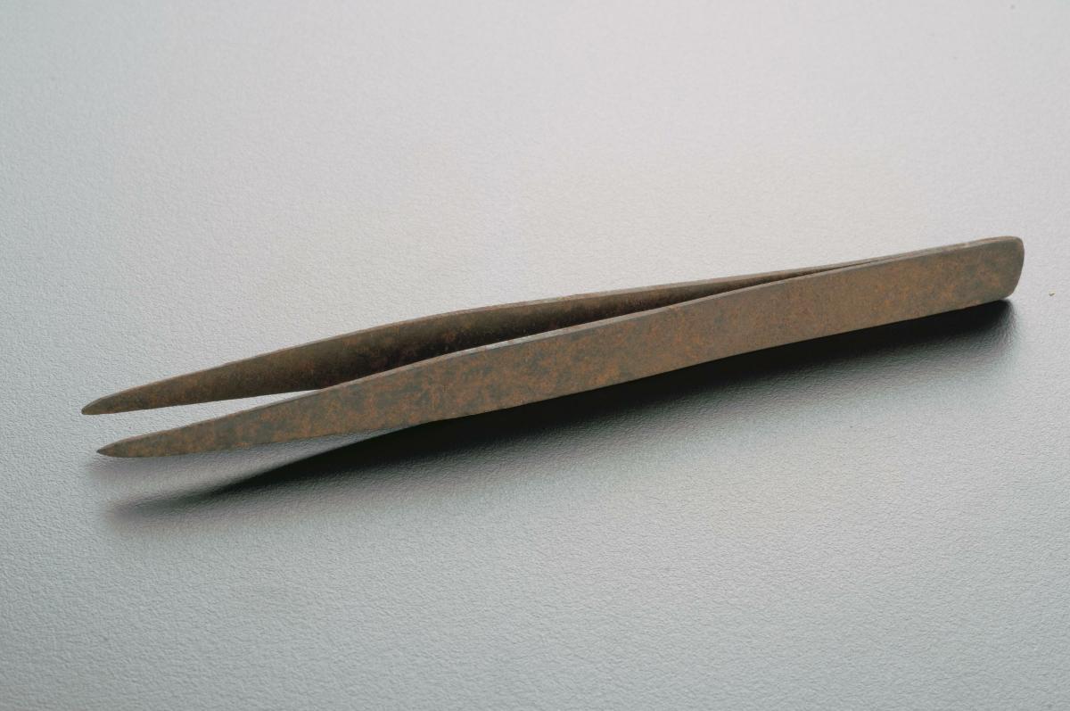 This set comprises of 3 mini-reeds, 4 winders, 1 spool of thread and 1 comb. One of the mini-reeds is attached with a key. It also has gold threads passing through its teeth, twisted into a cord, which is covered with pieces of cloth. Mini-reeds were comb-like structures used to keep warp threads from entangling. Winders are cross-like tools around which thread is wound. They are used to create equal tension across multiple threads in order to achieve a uniform surface.
