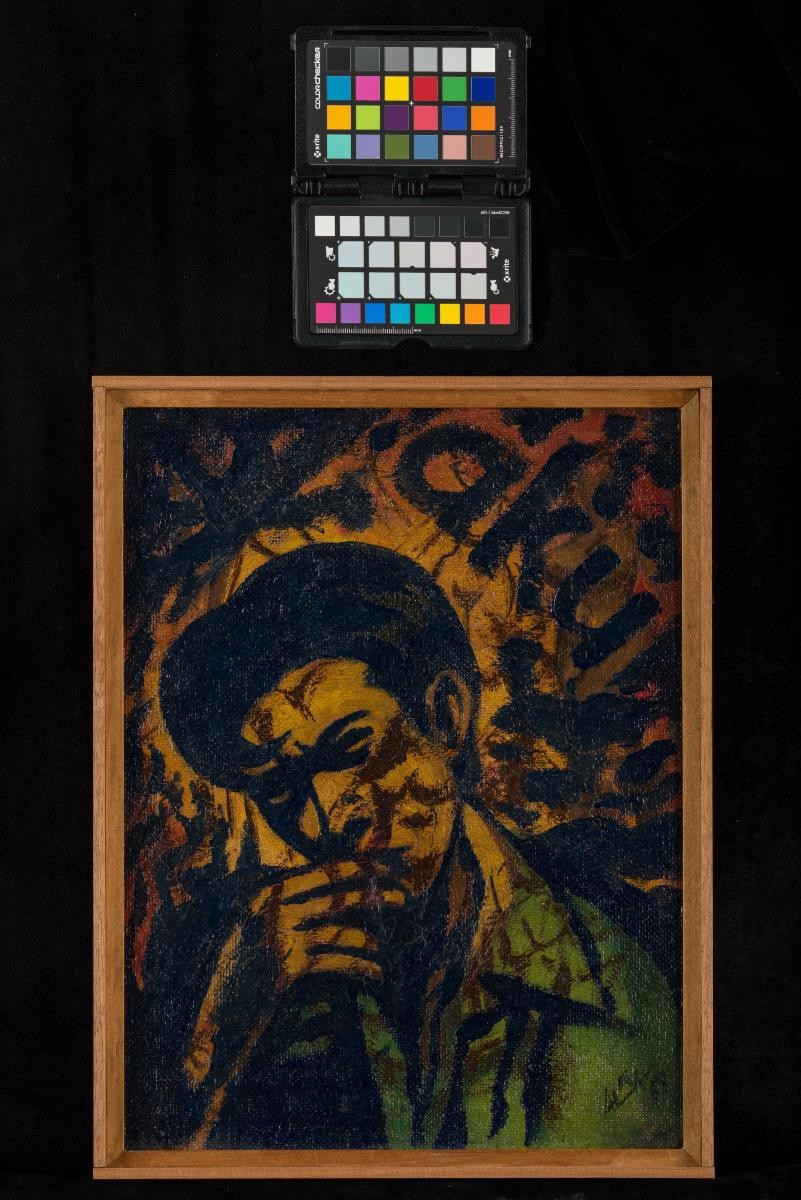 Executed after the Japanese Occupation, the work is a portrait of one of the most important poets in Southeast Asia. Here we can still observe Apin’s impressionist tendencies, similar to the works done during his PERSAGI days. Together with Chairil Anwar, Apin was also part of the Gelanggang group of artists and writers. The group played an important role in the discourse of Indonesia’s cultural identity during the post-colonial period as outlined in the Gelanggang Manifesto of 1946.