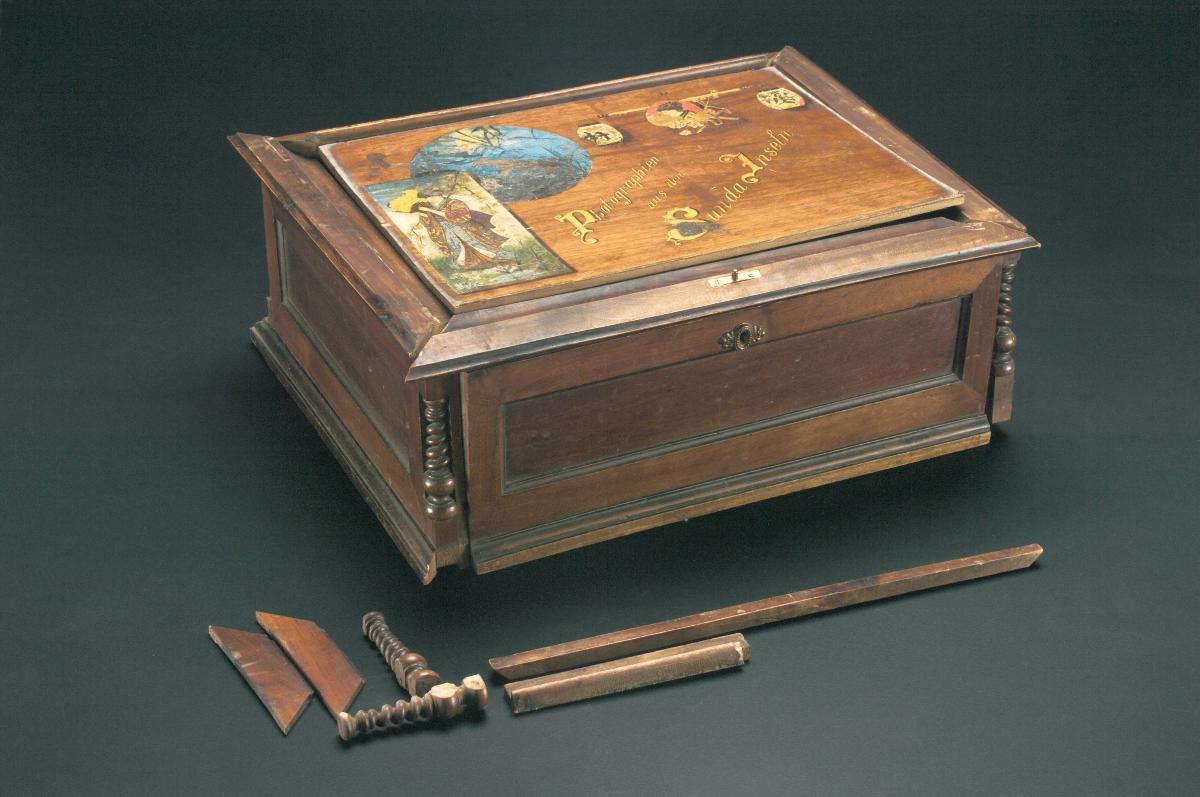 This is a wooden sight box used in the Second World War by the British and Commonwealth armies. Such a box was used to store military instruments, such as sights. A sight is a device attached to a weapon, used in the military to aim a gun at a target. The sights in this box may have been used with a 25-pounder field gun, the standard field artillery weapon of the British and Commonwealth armies in the Second World War.