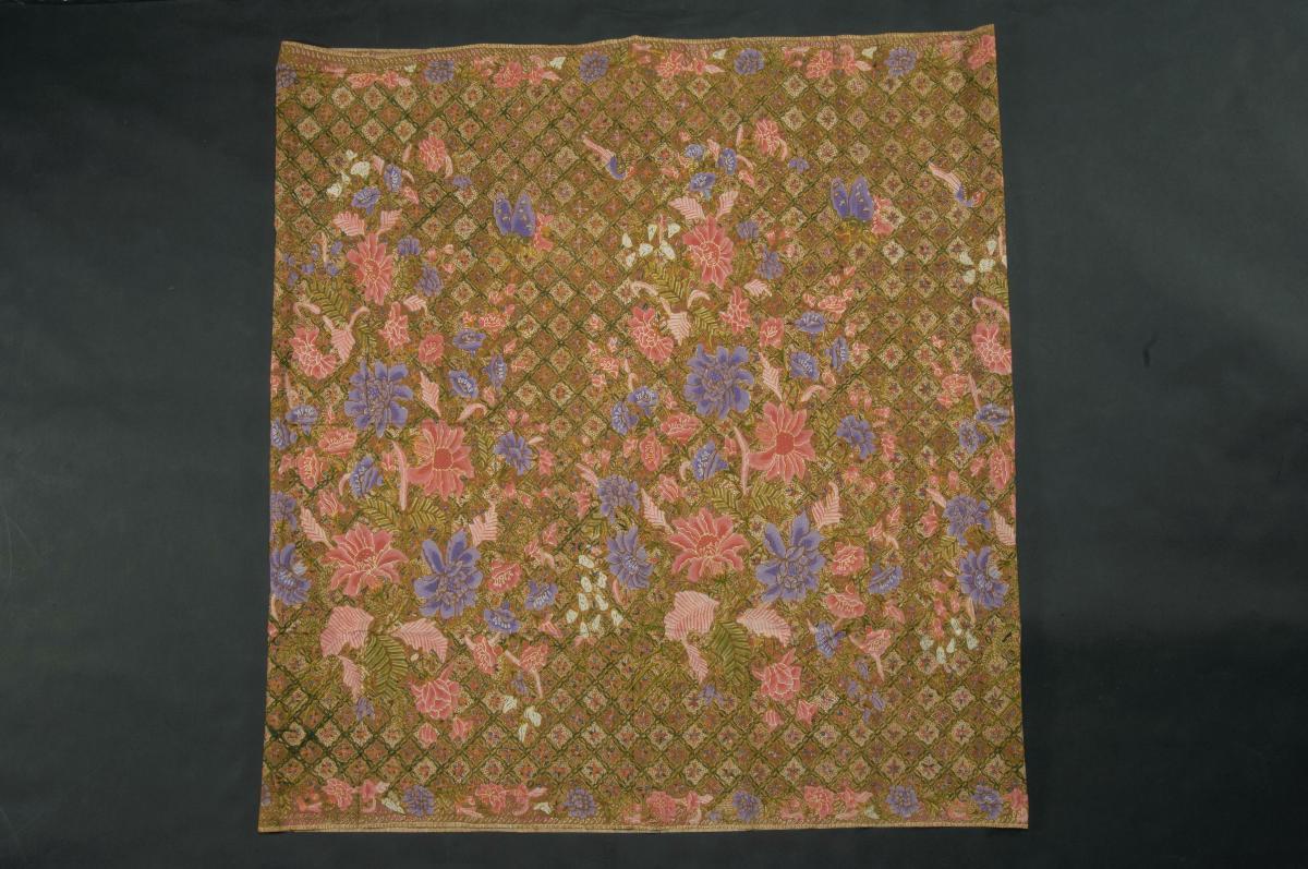 Sarongs were paired with kebaya as part of a matching set and worn by Peranakan women. The light purple kebaya, features embroidered floral motifs and the deep purple sarong features bouquets of yellow jasmine flowers on a floral background. Floral motifs are common in sarong kebaya designs due to their feminine associations. This sarong kebaya belonged to a Chitty Melakan family. Chitty Melakans are descended from marriages between South Indian Hindu merchants and local inhabitants.