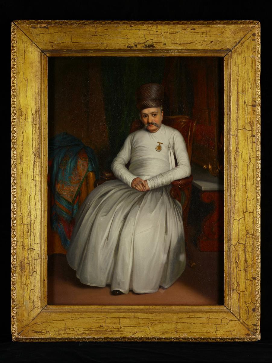 This half-length portrait of an unidentified Chinese merchant dressed in official robes is attributed to the painter Lamqua (1802–ca.1860) or his studio in Canton (modern-day Guangzhou), China. The realistic portrayal of the Chinese merchant is the result of the artist’s deft application of the Western painting technique of chiaroscuro---the use of light and shading to create a sense of three-dimensionality. Lamqua was famous in mid-19th century Guangzhou for his outstanding painting skills, in particular, for executing European-style works with a realistic figurative composition. Lamqua owned a popular workshop that produced portraits, harbour views and paintings of other subjects that appealed to foreign customers. Several of Lamqua’s paintings were even exhibited in the West, including at the Royal Academy in London in the 1830s and 1840s.