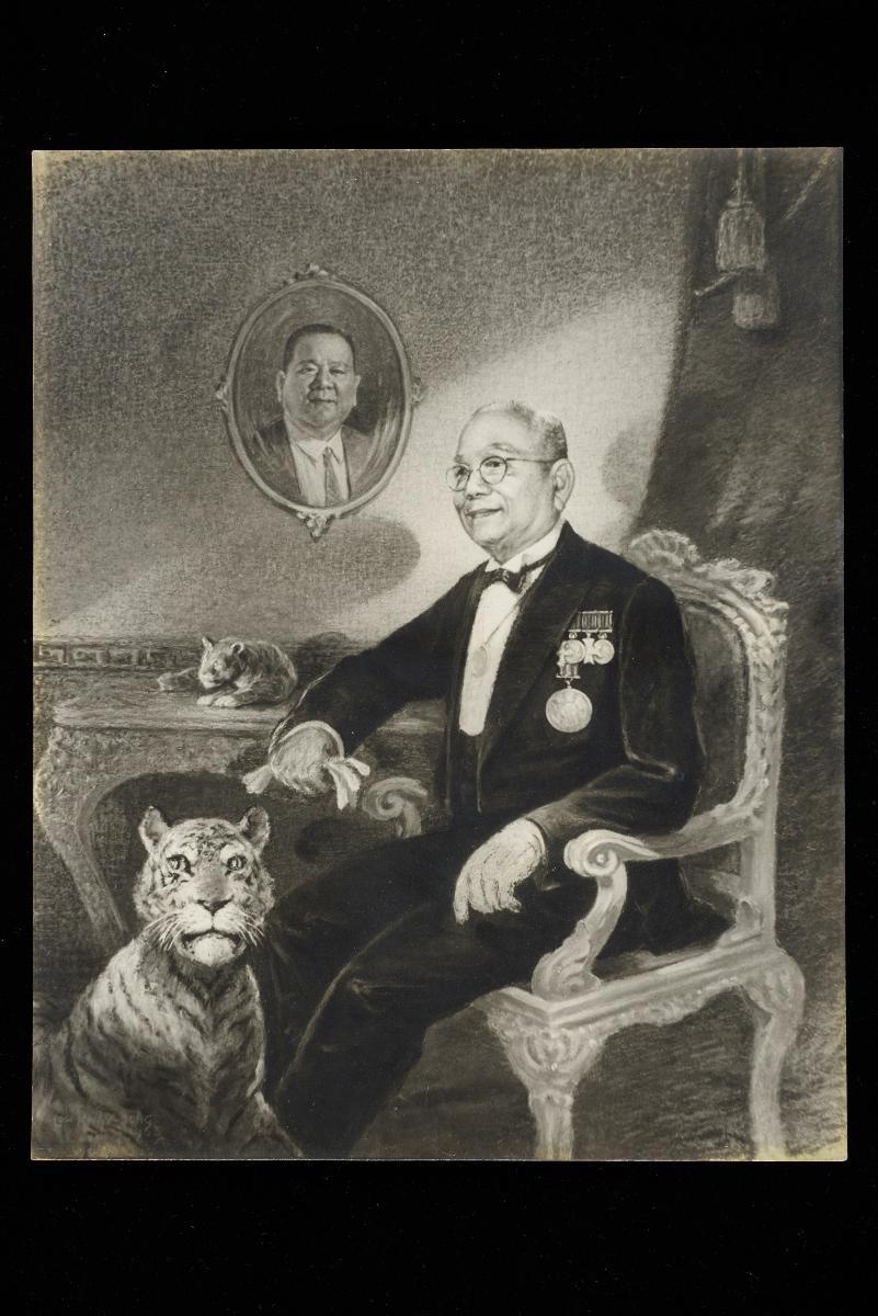 This postcard features a painting of Dr Sun Yat Sen by Low Kway Song. Dr Sun Yat Sen is portrayed dressed in military uniform and seated on a chair, grasping a large map in his right hand. Such postcards were sold to raise funds for Sun yat Sen’s revolutionary movement. Low Kway Song was a self-taught artist who painted portraits of notable personalities in Singapore and Malaya.Besides being a pioneer Singapore artist, he was also deeply involved in the performing arts as a member of the Merrilads Musical and Dramatic Association, a popular Peranakan performing group established in 1923.