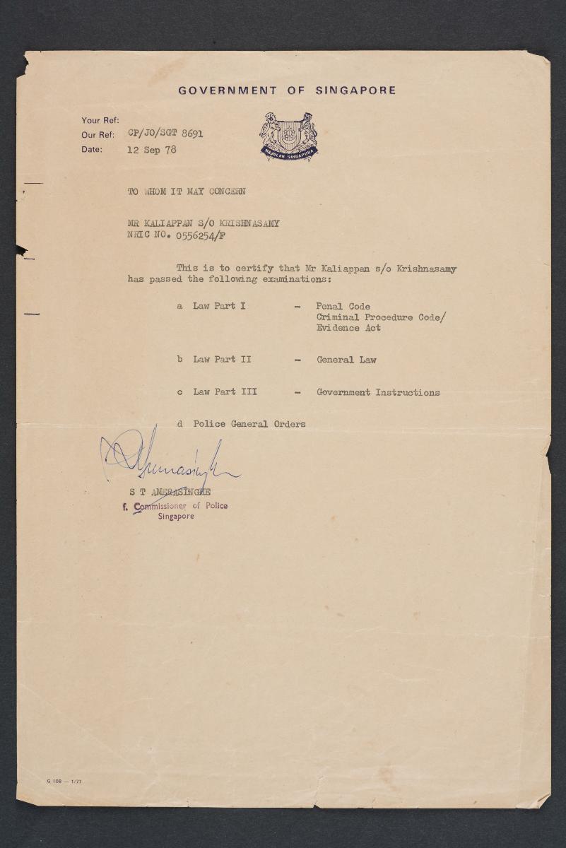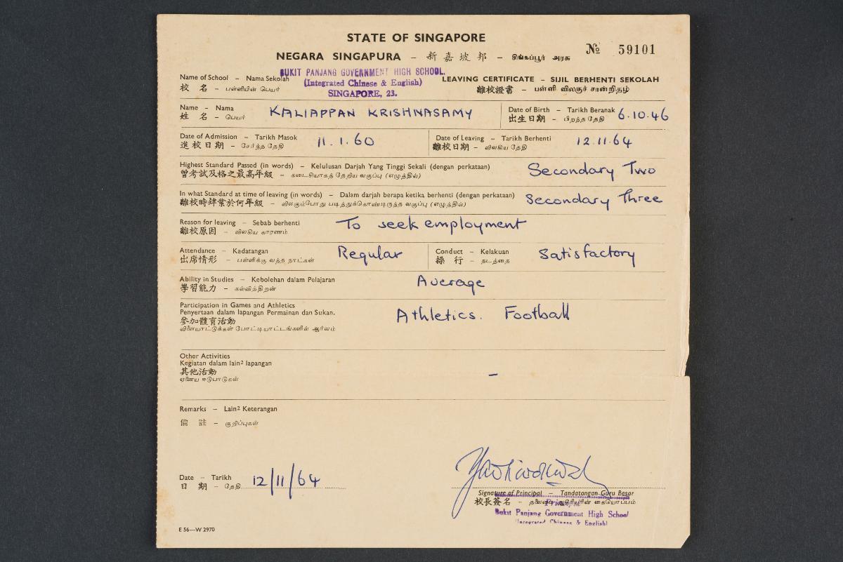 General certificate of Education of Kaliappan s/o Krishnasamy