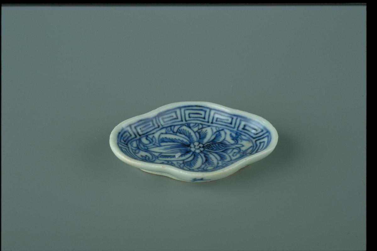 This large dish is painted with a floral decoration known as the ‘China aster’ or ‘Aster pattern’, which some scholars have identified to be a stylized representation of chrysanthemums. This Chinese porcelain motif was popular among overseas consumers in the Ottoman empire, Arab world and Europe. Large Chinese porcelain dishes were popular with Muslim consumers in the Middle East and Southeast Asia, as they served their communal dining habits well. In Indonesia, these large-sized porcelains were also occasionally used as offering dishes in ritual ceremonies.