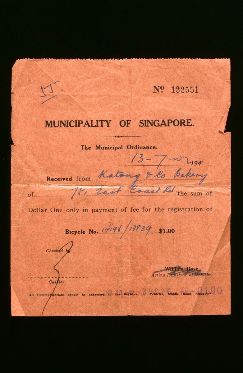 This driving licence, valid for a year, authorised the holder to drive Class 3 vehicles in Singapore. The licence was issued by the Registry of Vehicles, before a transportation unit within the Public Works Department (PWD) took over in the 1970s. This unit evenutally evolved to become the Land Transport Authority (LTA) in 1995.