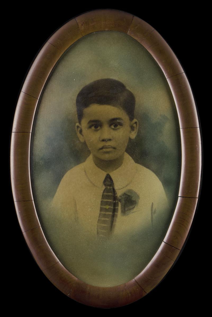 This is a half-portrait of Judge Hughes in three-quarter view, and set against a plain background. It is not clear who Judge Hughes is although his choice of Chinese dress suggests his attempt at asserting his Chinese identity. Coloured pigments were added directly onto this monochromatic photograph. It is still mounted in its original frame. Such portraits were hung in the halls of Peranakan homes to commemorate revered ancestors. This bust portrait contains a signature of the sitter on the bottom right of the photograph.
