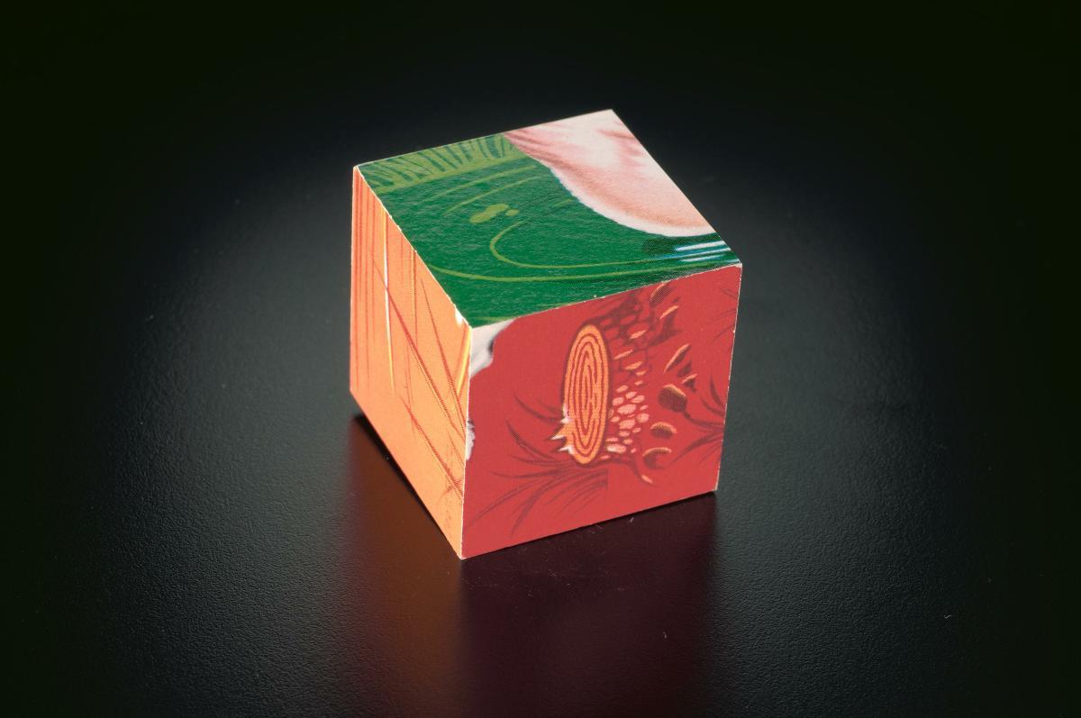 Seeing abstraction as a way to process one's inner spirituality, philosophical contemplation, as well as concept of time, Po Po's works from the 1980s challenged the accepted modalities of painting in Myanmar. Red Cube is one of the few surviving works in which he embarked on expanding the two dimentionality of painting by incorporating found objects into the work. In Po Po's own words, he describes this work as a 'shrine'. Each rock piled at the foot of the painting hung at a diagonal may represent a burden carried by those moving toward an exit--the state of enlightenment.