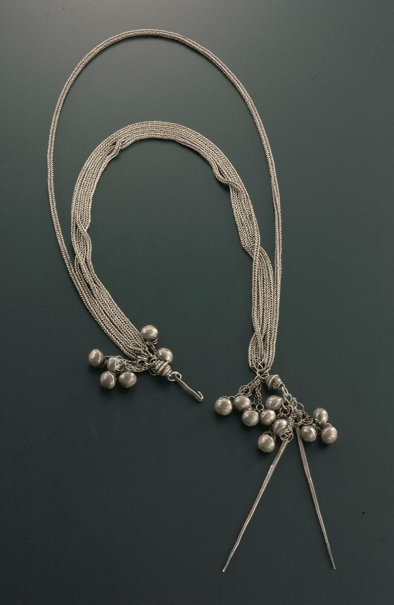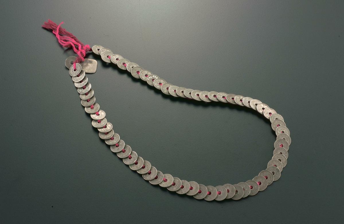 This simple gold chain would have been strung through more elaborate beads and would have formed part of a bridal trousseau for a Peranakan wedding.It is part of a group donation from descendants of Tan Kim Seng and Tan Jiak Kim. Both were wealthy merchants, philanthropists and leaders of the local Hokkien community.