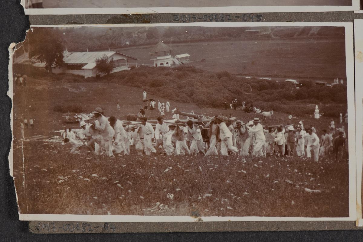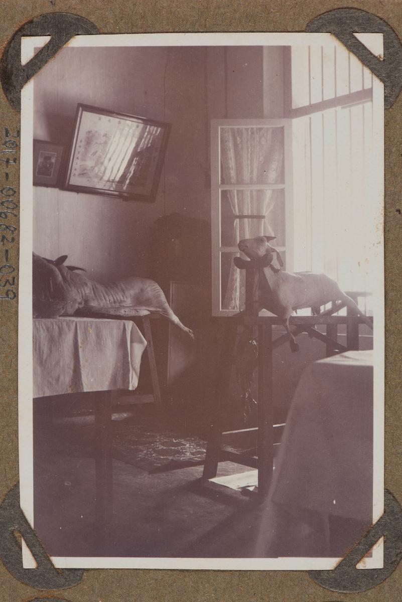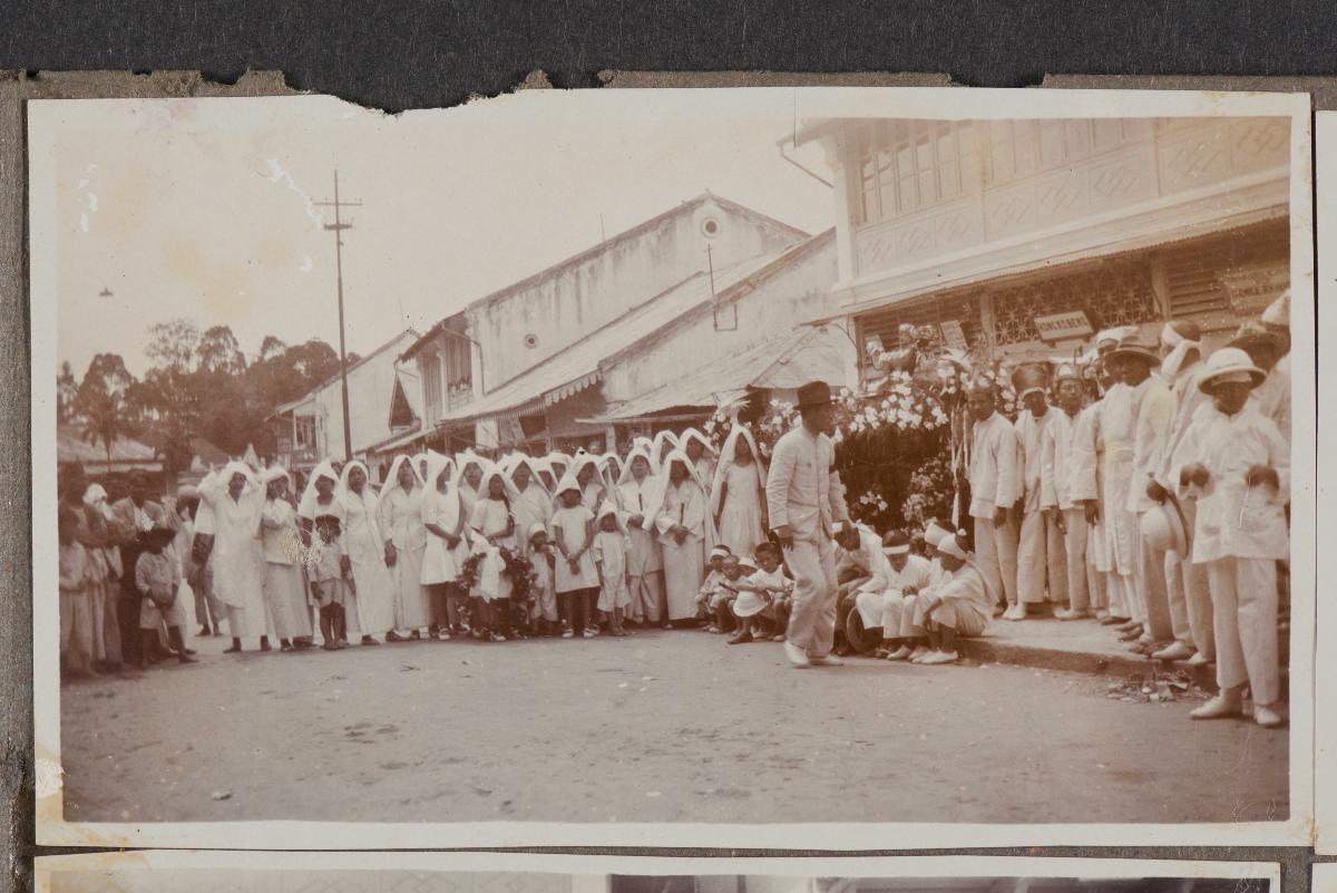 The album is made up of small photographs attached to album leaves, showing family and friends in interior settings and outdoors. A receipt was found in its pages. With continuous improvement of camera technology, it became possible to take photographs without the assistance of a studio in the first decades of the 20th century. Many middle-class families collected photographs in albums as a way of documenting family life, or documentasi keluarga.Ranging from formal studio portraits to albums of snapshots of everyday life and stately ancestral portraits, this large group of photographs reveals the many forms of photography available and gives insight into the various aspects of the lives of Peranakans.