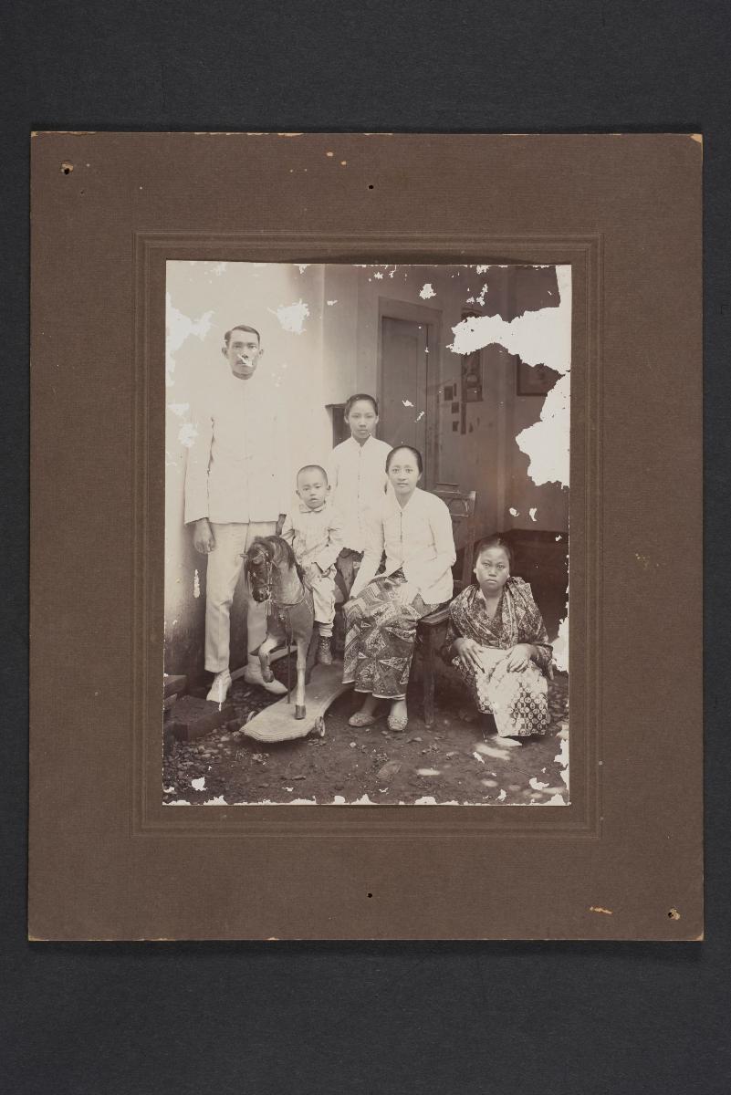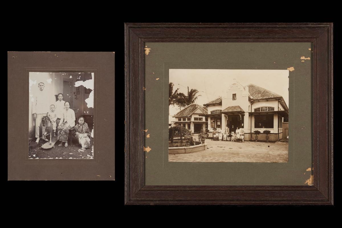 The album is made up of small photographs attached to album leaves, showing family and friends in interior settings and outdoors. A photograph on the first page is inscribed with ‘Kassier N.H.My & Magaiynmr S.S. Padang 27 Juni ’24.’ With continuous improvement of camera technology, it became possible to take photographs without the assistance of a studio in the first decades of the 20th century. Many middle-class families collected photographs in albums as a way of documenting family life, or documentasi keluarga.Ranging from formal studio portraits to albums of snapshots of everyday life and stately ancestral portraits, this large group of photographs reveals the many forms of photography available and gives insight into the various aspects of the lives of Peranakans.