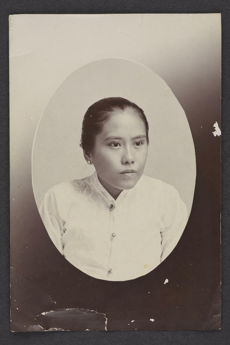 This photograph shows Mrs Tan Gwat Bing seated beside a nyonya. Mrs Tan Gwat Bing was the wife of Tan Gwat Bing, a Chinese Peranakan born in Yogyakarta. He was an avid amateur photographer and businessmen. Ranging from formal studio portraits to albums of snapshots of everyday life and stately ancestral portraits, this large group of photographs reveals the many forms of photography available and gives insight into the various aspects of the lives of Peranakans.
