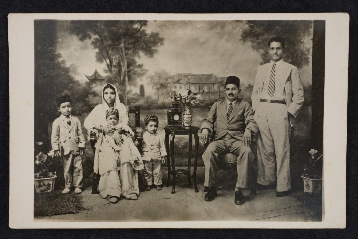 This studio photograph shows a man posing alongside three boys. The mounting board is stamped with the studio mark ‘Spring Flower Studio Singapore.’ Studios were already established across the Strait Settlements and the Dutch East Indies by the 1840s and became increasingly prevalent in the 1850s. During the 1920s, Chinese-owned studios dominated the studio photography trade in Southeast Asia. Ranging from formal studio portraits to albums of snapshots of everyday life and stately ancestral portraits, this large group of photographs reveals the many forms of photography available and gives insight into the various aspects of the lives of Peranakans.
