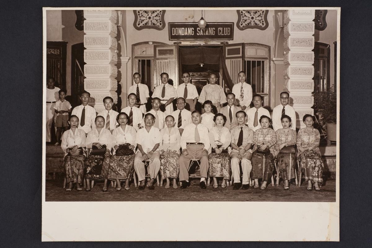 This photograph shows a group posing before an elaborately decorated bus with the signs ‘Dodang Sayang Club’, ‘Festa P.Pinang’ ‘1951’ on the front. Ranging from formal studio portraits to albums of snapshots of everyday life and stately ancestral portraits, this large group of photographs reveals the many forms of photography available and gives insight into the various aspects of the lives of Peranakans.